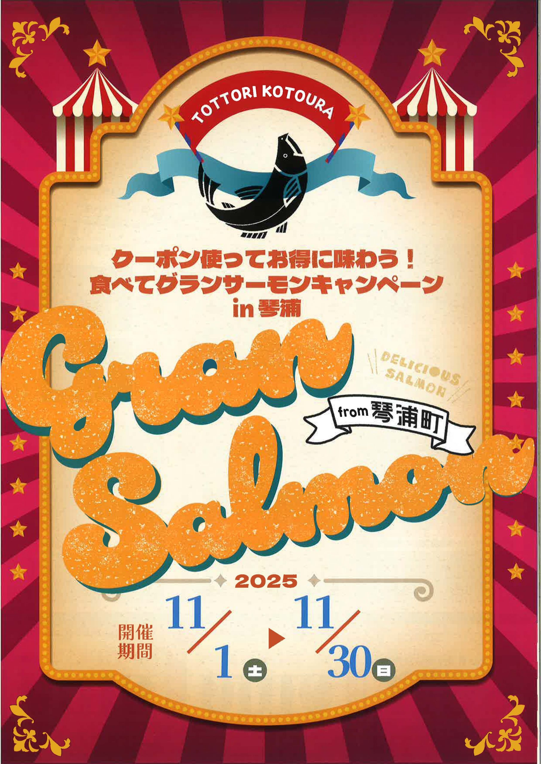 町内外へさらに地名度を上げるとともに琴浦の「食と観光」を定着させていく目的で、このグランサーモンをクーポンを使ってお得に味わってもらうキャンペーンを開催します!